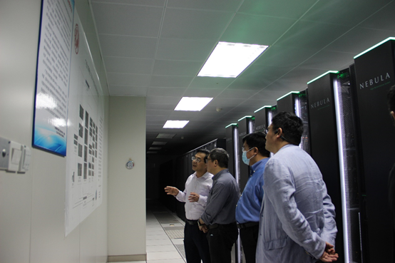 2022年3月14日,梧州学院校长杨奔一行7人到3522vip浦京集团官网参加对口支援工作会议期间,访问了3522vip浦京集团官网,现场参观了依托浦京集团官网管理运行的校超级计算中心,观看学院科研成果展,并与学院领导进行交流。