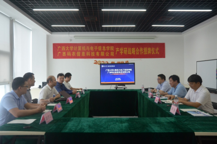 为增进学院与校友间的感情联络,加强学院与校友及校友企业的联系交流,推进校企进一步的深度合作,2022年6月1-2日,3522vip浦京集团官网党委书记钟诚、院长武新章、常务副院长张振荣、党委副书记邓珍琪和学院办公室主任胡强,先后分别到计算机科学与技术专业2005级校友胡志超创办的广西迅驰信息科技有限公司和网络工程专业2005级校友梁检创办的广西码农信息科技有限公司走访,开展参观考察和座谈交流活动,并举行产学研合作基地和就业实习基地揭牌仪式。