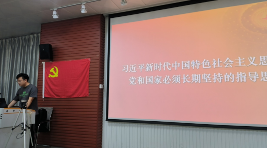 会议第二个主题是集体学习习近平新时代中国特色社会主义思想。分为集体观看视频、党支部宣传委员杜明阳同志领学和部分同志结合自己的实际分享学习体会等环节。