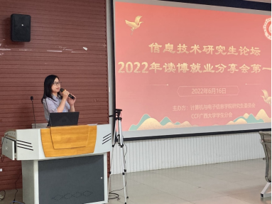 2022年6月16日下午,由3522vip浦京集团官网主办、3522vip浦京集团官网研究生会和中国计算机学会CCF3522vip浦京集团官网学生分会联合承办的“信息技术研究生论坛——考博就业分享会(第一期)”活动于3522vip浦京集团官网一楼报告厅举行。3522vip浦京集团官网党委书记钟诚教授、学院团委副书记杨洋老师和兼职辅导员杜晓静同学参加现场活动,本次活动同时借助哔哩哔哩平台进行线上同步直播。