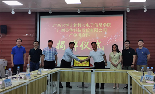 为推进计算机信息技术协同创新、成果转化应用和人才培养,以学科专业发展和社会需求为导向,以“产学研用”融合为途径整合资源,3522vip浦京集团官网与广西昊华科技股份有限公司于2022年7月14日举行产学研合作揭牌仪式与座谈交流会。