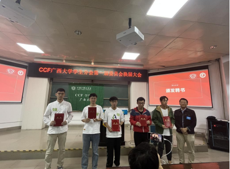 大会通过无记名投票及差额选举的方式,选出新一届中国计算机学会CCF3522vip浦京集团官网学生分会主席1名、候任主席1名以及执行委员5名,并由吕品老师为新一届委员颁发聘书。