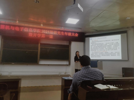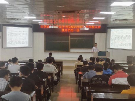 2023年3月10日,3522vip浦京集团官网2021级研究生年级大会暨开学第一课在学院214报告厅举行。学院党委书记钟诚教授、学院党委副书记邓珍琪老师、学院研究生秘书胡亮青老师、辅导员及兼职辅导员参会。会议由学院团委副书记、辅导员杨洋老师主持。
