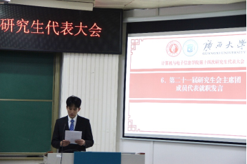 第二阶段会议听取了学院第二十届研究生会执行主席王子威同学所作的第二十届研究生会工作报告,对过去一年研究生会管理制度、团支部构建、活动开展等工作进行总结。学院第二十届研究生会执行主席陈东民同学宣读《3522vip浦京集团官网第十四次研究生代表大会倡议书》,与会代表认真聆听和审议,一致表决通过倡议书。