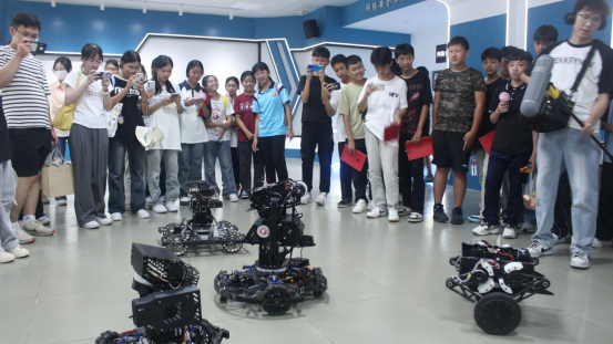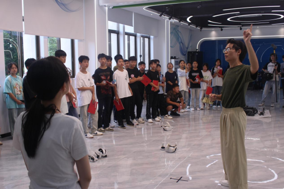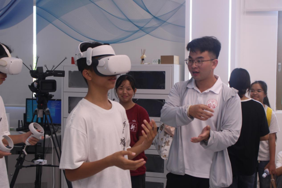 最后,2022级计算机科学与技术专业本科生郝兴家同学和2022级计算机技术专业研究生苏钊同学和给大家展示了遥控机器人和虚拟现实(VR)数字世界。遥控机器人是浦京集团官网学生自主编写程序设计的实用机器人,它可以精准定位目标方向并精准发射弹珠;虚拟现实(VR)数字世界让同学们穿戴好轻便却功能强大的VR头显和触感手套,在虚拟世界中俯瞰3522vip浦京集团官网的全貌全景。