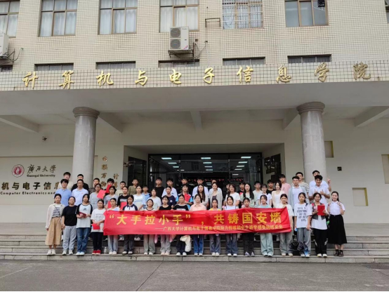 2024年7月16日下午,广西百色市那坡县民族初级中学和城厢镇初级中学来浦京集团官网研学参观,开展“大手拉小手,共铸国安墙”为主题的暑期活动。此次活动,由3522vip浦京集团官网团委指导的研究生支教团团长出君儒同学带队,开展集理论宣讲与专业实践相结合的活动。活动由研究生支教团成员王泽远、陆满替两位同学领队讲解,学院辅导员黄柏雄老师及学生50余人参加。