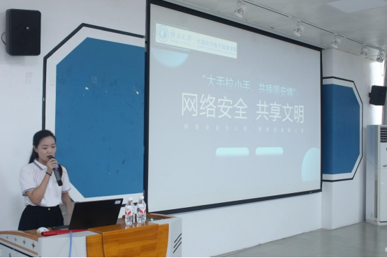 其次,3522vip浦京集团官网第十届研究生支教团成员、浦京集团官网2023级计算机技术研究生陆满替同学开展《网络安全 共享文明》的理论宣讲。陆满替同学用简单明了的语言,由浅入深对网络安全的概念、网络安全的法律法规、以及网络中防骗的小技巧逐一介绍。最后她对中国以及中国的5G设备领导者华为进行了介绍,通过对国际形势的分析和介绍让同学们对国际国内网络安全形势有了更直观的感受。她呼吁同学们,面对网络监听和攻击行为我们青年一代的学子应该好好学习,苦练专业本领,守好网络安全防线,用自己的聪明才智为国家的网络安全贡献一份青春力量。