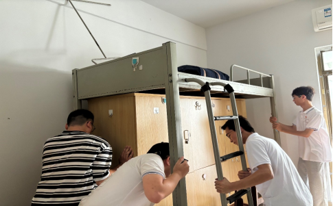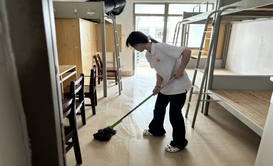 在迎接新生过程中,党员志愿者们还深入到新生宿舍,在新生宿舍打扫卫生、整理床铺、摆放书桌凳子等,为新同学营造干净、整洁、舒适的生活环境和学习环境。