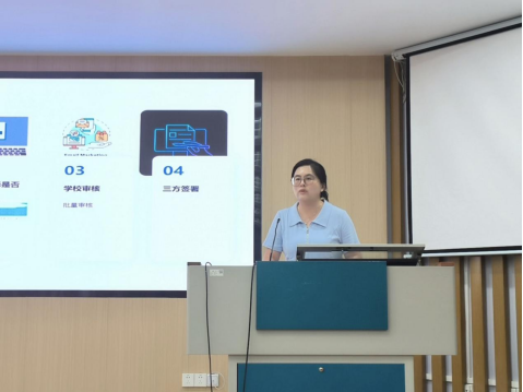 大会第三项,教学办公室甘瑜萍老师对照毕业相关政策文件,针对毕业学分要求和课程替换等问题进行详细解读。此外,她还特别强调了毕业前同学们需要完成的各项准备工作,以确保每位同学都能顺利毕业。