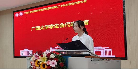 第三项议程,3522vip浦京集团官网学生会代表黎栗蓉同学发言。她对学院学生会一年以来的工作给予肯定,并希望学院学生会继续坚持从同学中来、到同学中去的工作理念,为不断提升同学的满意度、大局贡献度以及社会认可度不懈努力。