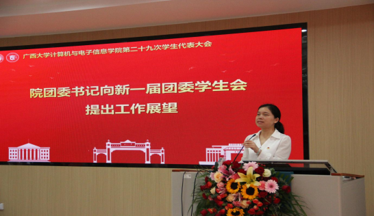 第九项议程,学院团委书记杨洋老师向新一届团委、学生会提出两点工作期望:一是要强化思想引领,塑造时代青年新风貌,更好凝聚学院学生力量;二是要突出学科支撑,打造学风建设新阵地,让同学们在实践锻炼中增强社会认知,强化社会责任担当。