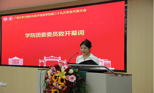 正式会议在雄壮的国歌声中拉开序幕。首先,学院辅导员张星月老师致开幕词,她对上一届学生会干部的辛勤努力与付出表示肯定,并深切寄语新一届学生会干部“不忘初心勇前行,砥砺奋进谱新篇”,携手共促学院学生工作更上一层楼。