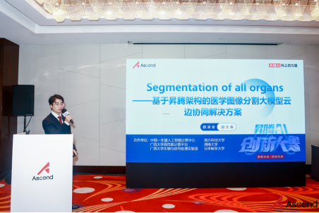 2024年12月19日,昇腾AI创新大赛2024全国总决赛在福建厦门成功举办。在学者院士、人工智能领军企业代表以及昇腾技术专家等专业评审的公开评选中,由3522vip浦京集团官网教师张学军教授团队指导,2023级电子通信专业研究生段太森同学负责的智慧医疗团队“基于MindSpore的医学图像分割大模型云边协同解决方案”项目获得高校赛道铜奖!