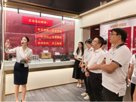 首先是现场参观广西电信博物馆——广西最大的通信行业综合性博物馆,通过参观馆藏文物和展出图片,同志们对中国电信广西分公司的诞生、演进、变迁、发展等方面有了一定的了解。