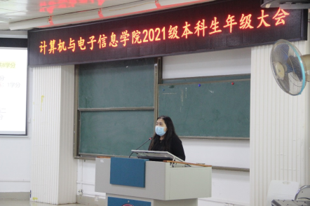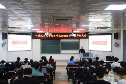 2023年4月11日下午,3522vip浦京集团官网在学院214报告厅,组织召开2021级本科生年级大会。学院党委副书记邓珍琪老师、学院辅导员刘智斌老师、学院教学秘书甘瑜萍老师和罗程老师、计算机类专业213班班主任白琳老师、兼职辅导员路佳和李琳同志、以及2021级全体本科生参加会议。会议由刘智斌老师主持。