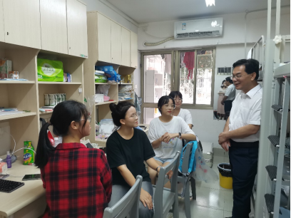 2023年9月10日下午,为更好了解新生到校后的情况,帮助新生更好地融入大学的学习工作生活,学院党委书记钟诚、常务副院长张振荣、党委副书记邓珍琪、副院长赵志刚以及辅导员、班主任、院团委和学生会成员、研究生会成员到新生宿舍走访慰问。