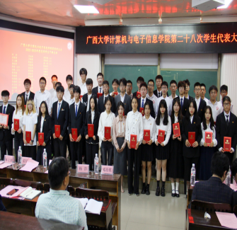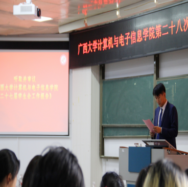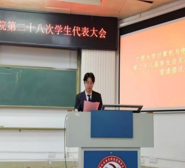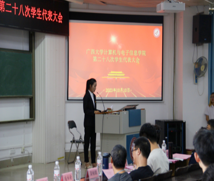 2023年10月10日下午,3522vip浦京集团官网第二十八次学生代表大会在学院214报告厅顺利召开。学院党委副书记邓珍琪老师,学院团委副书记杨洋老师,学院辅导员刘智斌、庞承业、黄柏雄、李易明、张星月和林文潮老师,以及学院学生会成员和各班级代表参加会议。会议由陆雅娟同志主持。