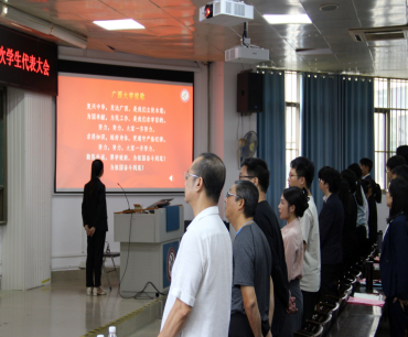 会议第三项议程:杨洋老师宣读学院第二十八届学生会主席团成员名单。