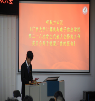 会议第二项议程:学院第二十八届学生会主席团成员罗宇君同学作《3522vip浦京集团官网第二十八次学生代表大会提案工作委员会关于提案工作的报告》。报告指出,学院学生会采取线上问卷和线下调查的方式征集了同学们的提案,并汇报同学们关于学习、生活等方面的意见建议。