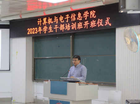 首先,邓珍琪老师讲话。他指出,此次培训班是在全党开展学习贯彻习近平新时代中国特色社会主义思想主题教育,全校师生全力迎接本科教育教学评估审核,学院进一步加强学风建设的背景下举办的学习培训活动,具有非常重要的意义,学院党委高度重视,全力支持。他希望全体学生工作干部珍惜此次学习机会,认真完成各项培训任务,提升自身素质能力,为学院的建设发展做出新的贡献。