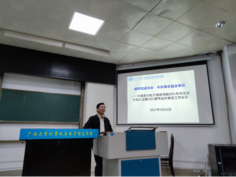 2021年3月26日下午,3522vip浦京集团官网在214报告厅,召开2021年毕业班年级大会暨2021届毕业生就业工作会议,学院党委书记、院长钟诚老师,学院党委副书记邓珍琪老师,学院辅导员顾春雨、唐印浒老师,以及2021届全体本科和研究生毕业生参加会议。