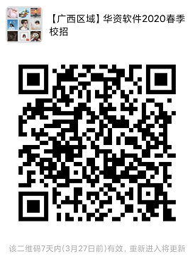 华资软件春季校园招聘将推出五期互动分享交流会,请于3月27日前进入微信群,欢迎各位邀请同学、朋友进群。